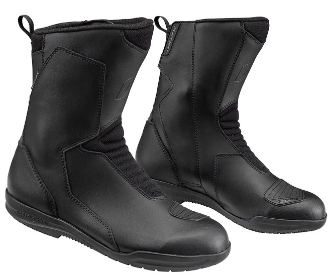 The G.Yuma is a made in Italy touring boot. The leather upper and Cordura inserts to provide excellent levels of movement and comfort, along with a Drytech Waterproof Membrane. Internal shin guard plate, malleolus reinforcements, gear protection and reflex insert complete the range of protective features. Side-entry system with elastic zip panel and Velcro for customized fit . Rubber sole designed for excellent grip and stability.